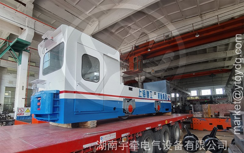 礦用25噸湘潭蓄電池電機車裝車發(fā)貨。